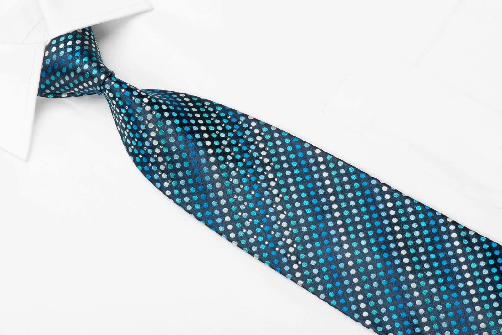 Austin Reed Mens Crystal Silk Necktie Dots On Blue Sparkling With Rhinestones