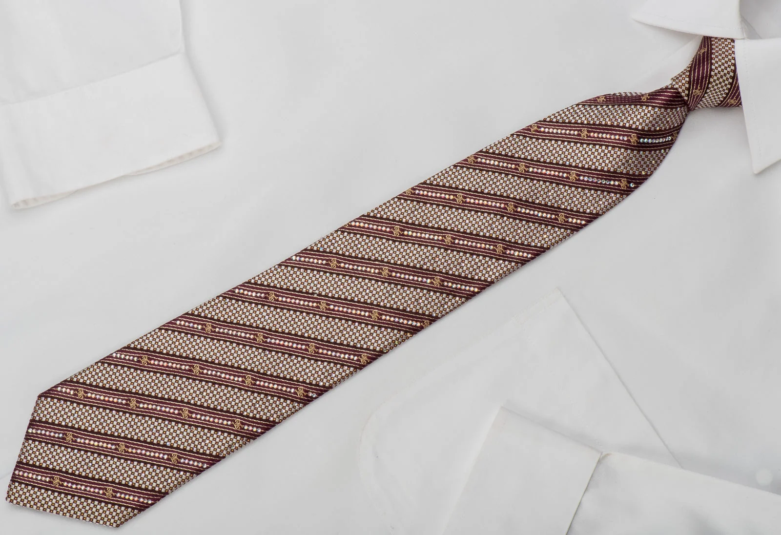 Striped On Burgundy Rhinestone Tie With Gold Sparkles