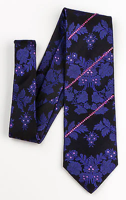 Rhinestone Necktie By Lancetti Dark Purple Floral On Black With Pink Rhinestones
