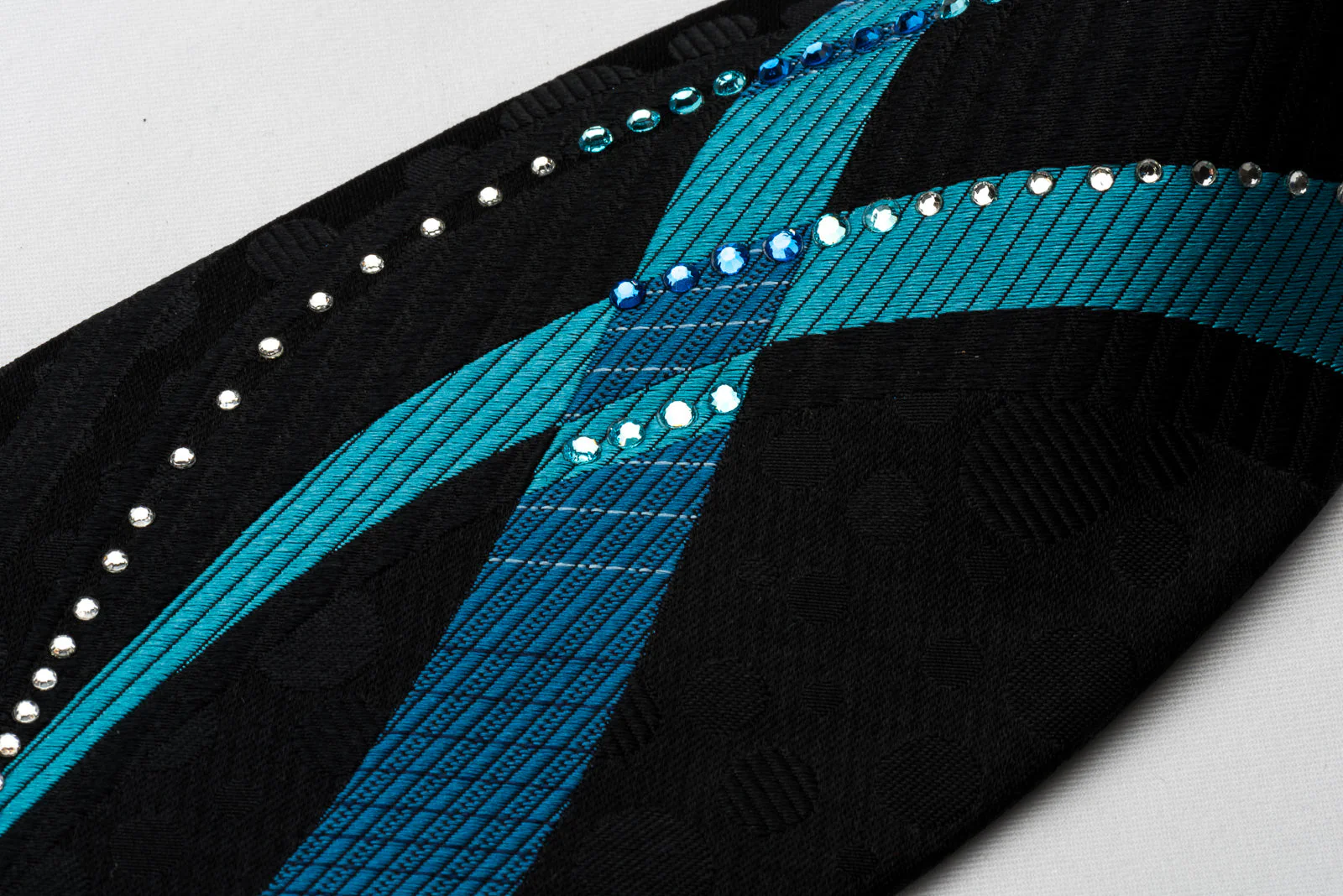 The Tie Story Rhinestone Necktie Blue Waves On Black Silk